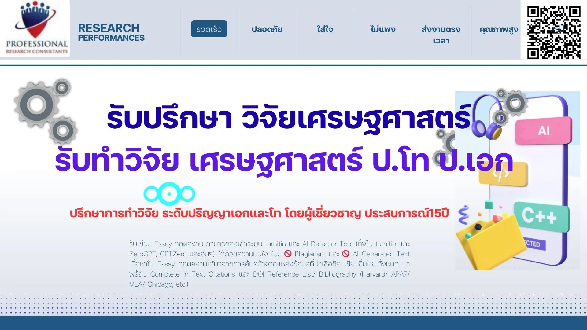 บริการปรึกษาการทำวิจัย  รับทำวิจัยเศรษฐศาสตร์  วิทยานิพนธ์เศรษฐศาสตร์   สารนิพนธ์เศรษฐศาสตร์  หัวข้อวิจัยเศรษฐศาสตร์ และดุษฎีนิพนธ์ วิจัยปริญญาเอกด้านเศรษฐศาสตร์ รับทำสารนิพนธ์เศรษฐศาสตร์ แบบผู้ช่วยวิจัย และที่ปรึกษา ทุกขั้นตอน