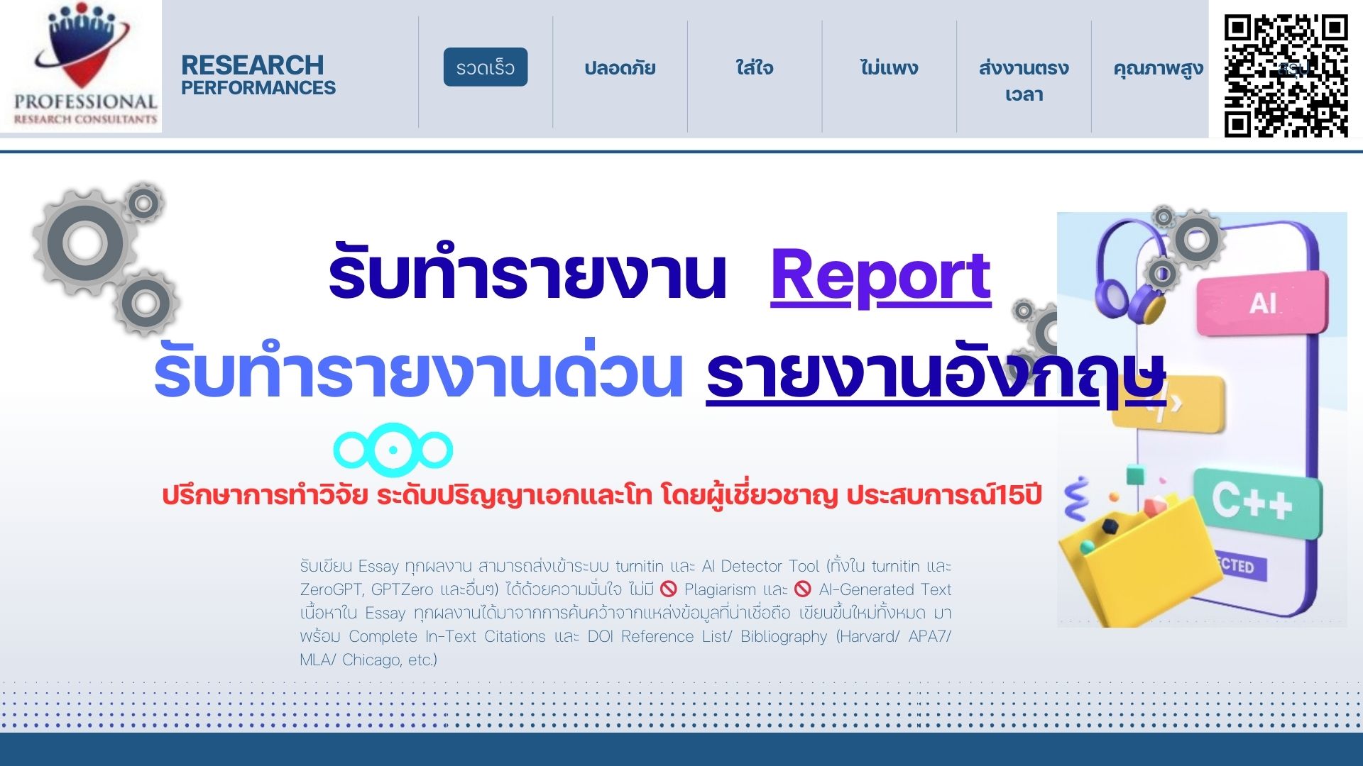 - ให้บริการทำรายงาน โดยทีมงานที่ไว้ใจได้ จริงใจ ดูแล และให้บริการความต้องการของลูกค้า สามารถพูดคุย ประสานงานกันได้ตลอดเวลา เพื่อให้รายงานของท่านออกมาดี มีคุณภาพ และที่สำคัญคือเสร็จทันเวลา