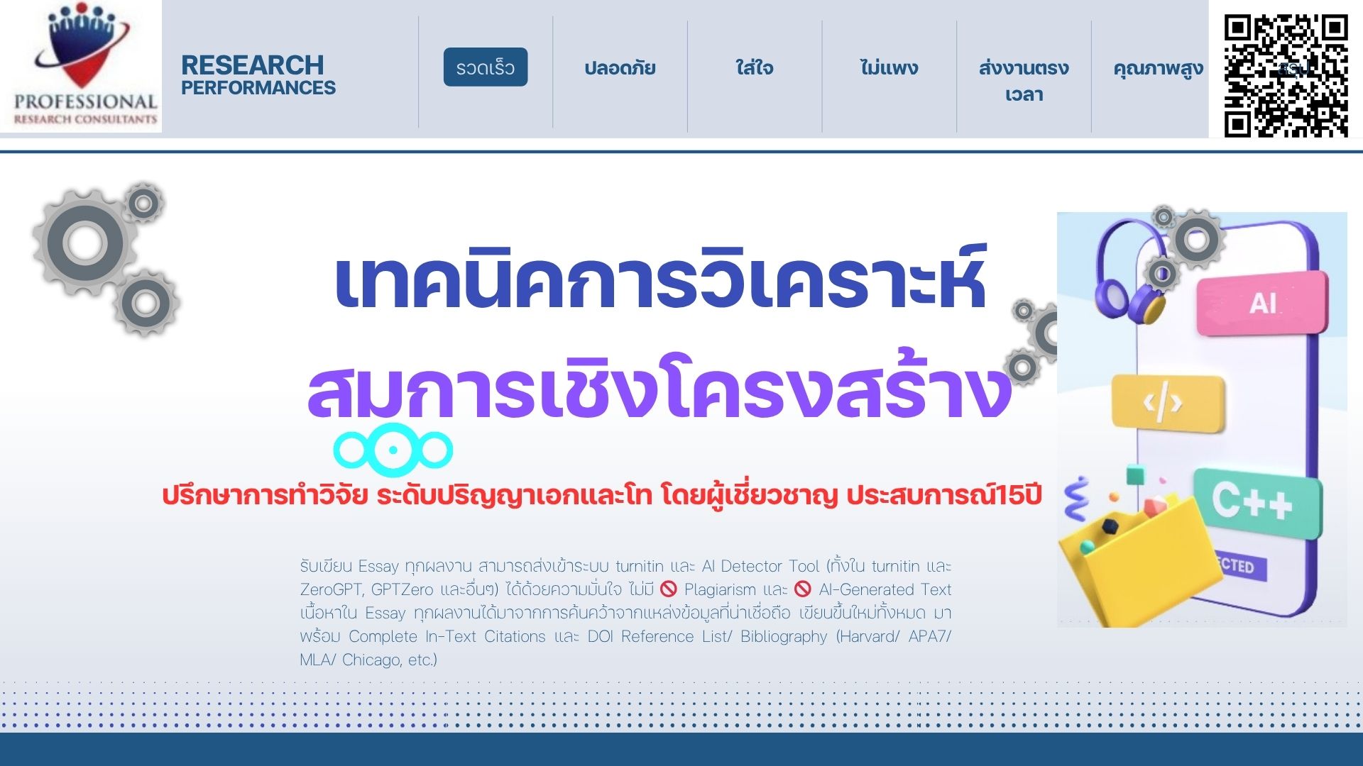 • การวิเคราะห์ตัวแปรแฝง: สามารถใช้เทคนิควิเคราะห์เชิงโครงสร้าง เช่น Confirmatory Factor Analysis (CFA) เพื่อยืนยันโครงสร้างของตัวแปรแฝง.